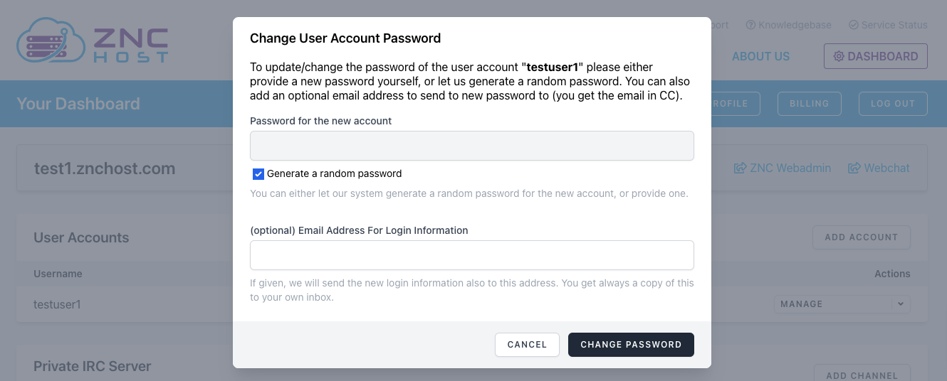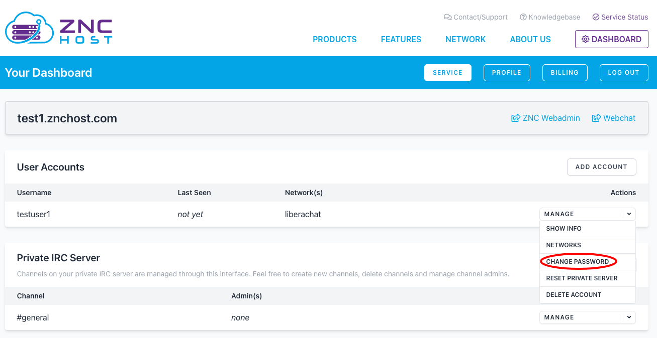 Alternatively, as the service owner, you can change passwords for all accounts through your dashboard: